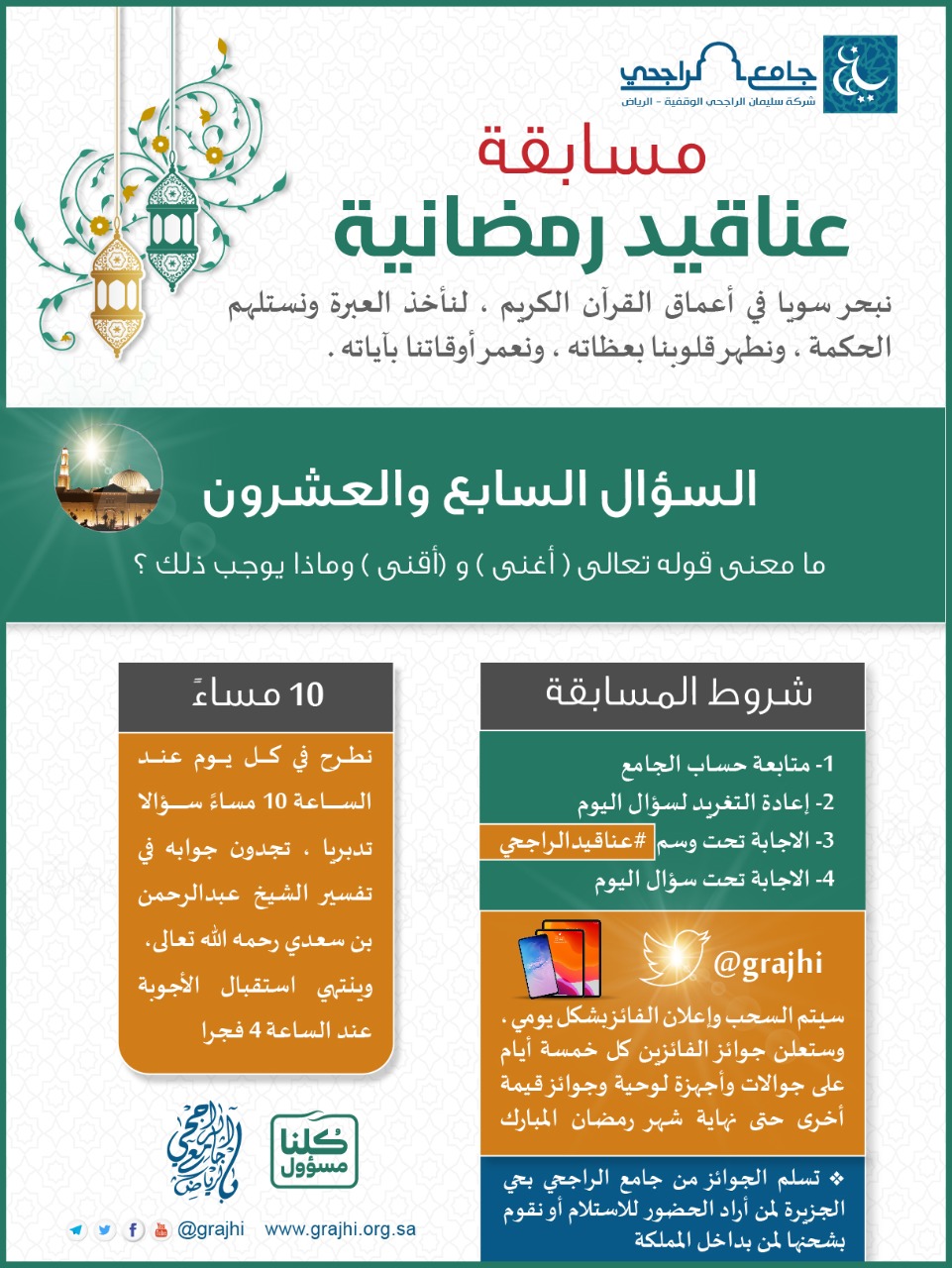 فرع شركة الراجحي الوقفية بالرياض على تويتر السؤال السابع والعشرون من مسابقة عناقيدالراجحي