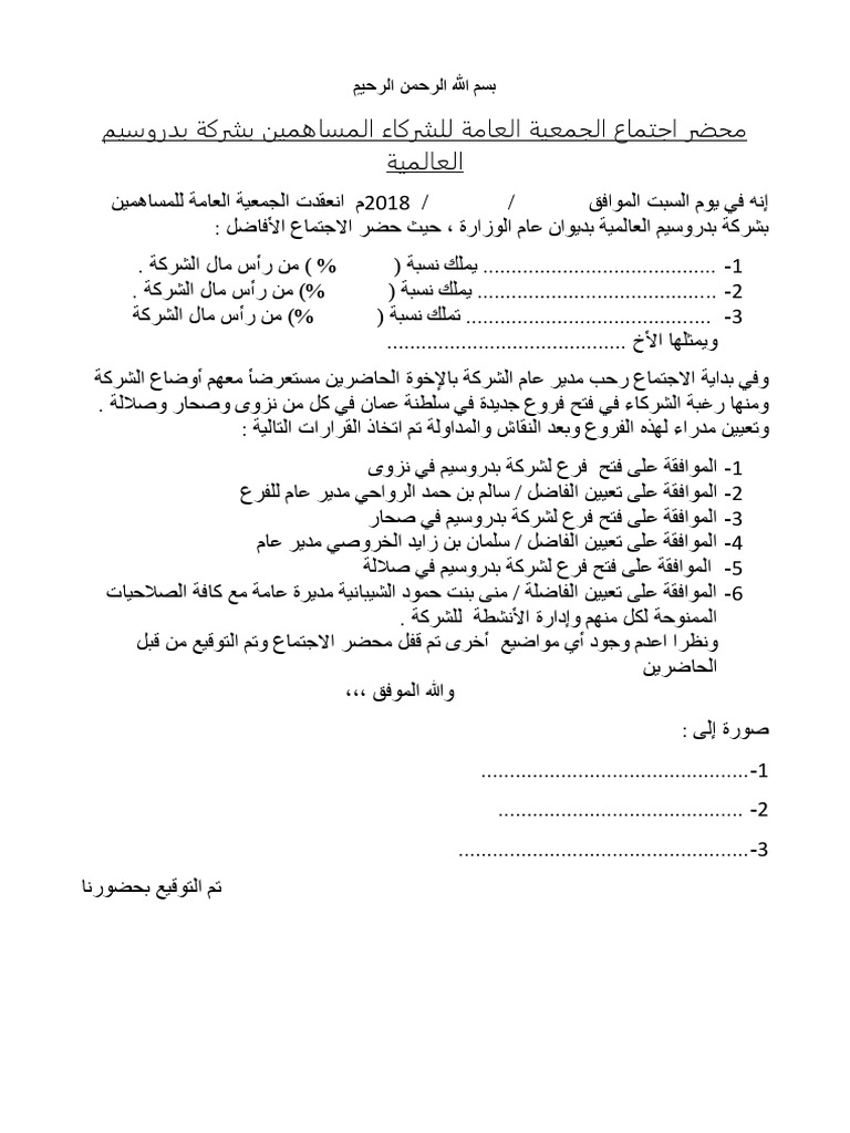 نموذج محضر اجتماع الجمعية العمومية Facebook